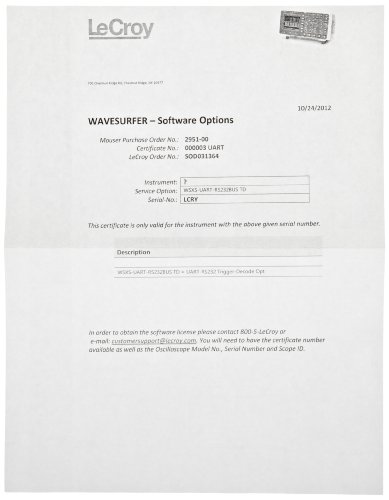 LeCroy WSXs-UART-RS232BUS TD UART and RS232 Bus Trigger and Decode Option for WaveSurfer Xs Oscilloscopes