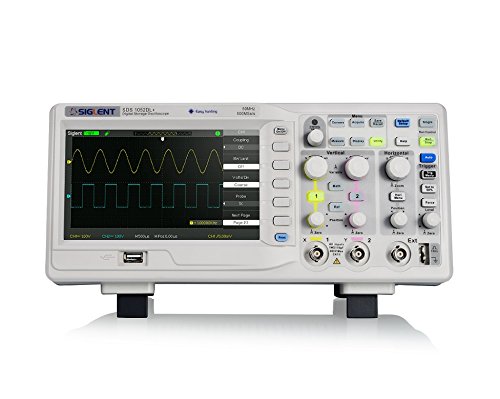 50MHz, two-channel digital oscilloscope for electronics applications such as product design, assembly lines, repair and servicing, and electrical engineering education^Maximum real-time sample rate of 500MS/s per channel and record length of 32kpts per channel for acquiring detailed waveforms^Advanced triggers for isolation of specific signals^Built-in frequency counter measures real-time frequency from 10Hz to 50MHz^7" color TFT-LCD with an internal 8 x 18 division grid for viewing waveforms