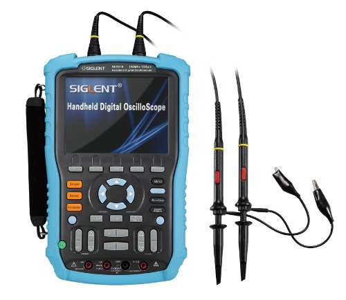 100MHz handheld, two-channel digital oscilloscope for viewing electrical signals with multimeter mode for measuring voltage, frequency, duty cycle, and power
